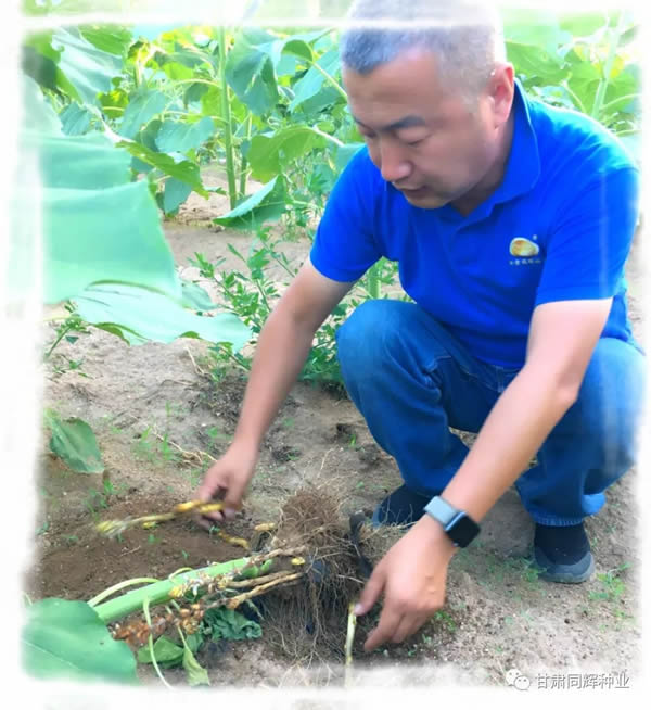 公司副總金濤在查看對照品種列當(dāng)寄生情況