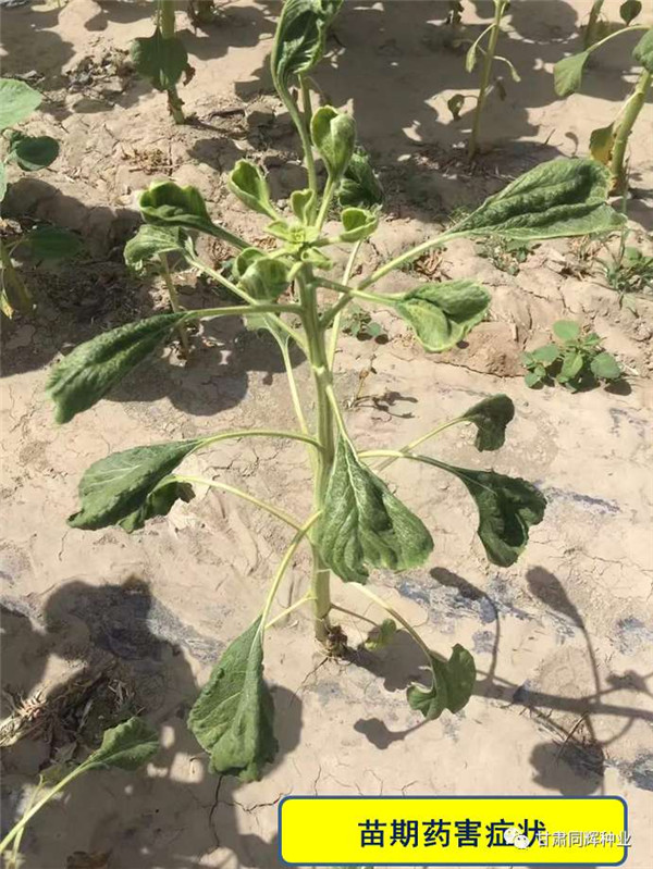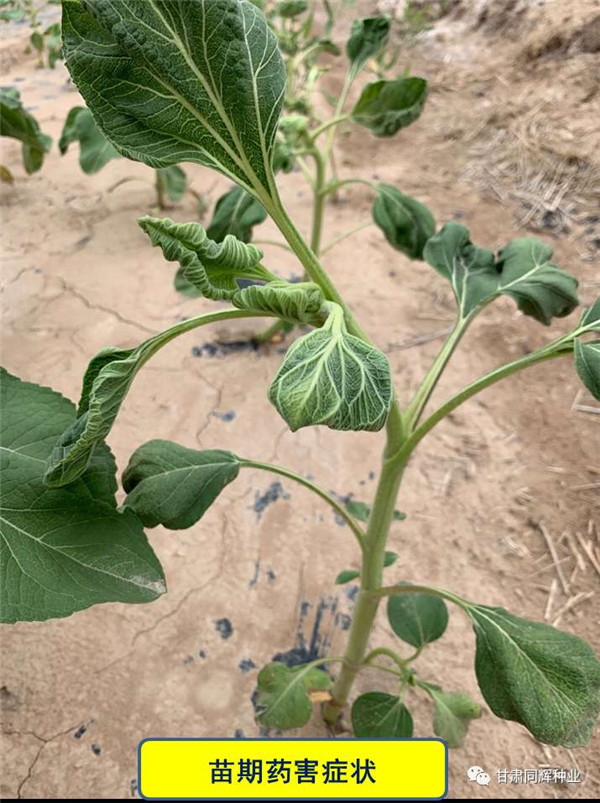 需要注意的是:向日葵藥害癥狀與重度鹽堿地的生理脅迫癥狀癥狀相似,與低溫風(fēng)災(zāi)凍害等原因造成的癥狀也有許多相似之處,在生產(chǎn)中需要注意綜合判斷區(qū)分。